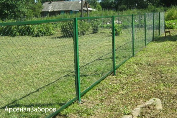 Конструкция забора из сетки-рабицы с протяжкой арматурой